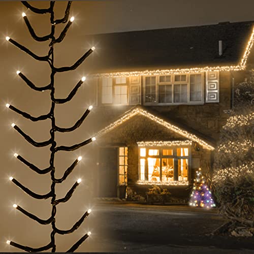 SHATCHI 1920 Christmas Tree Cluster Lights Multifunction 8 Light Modes, Timer Green Cable Indoor/Outdoor Low Voltage Holiday Home Decorations, Warm and Cool White