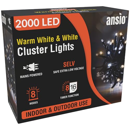 ANSIO® Christmas Lights 2000 LED 24m/78ft Cluster Christmas Tree Lights for Indoor & Outdoor Warm White & Cool White Decorations Fairy Lights with Timer for Xmas Garden & Party | Mains Powered…