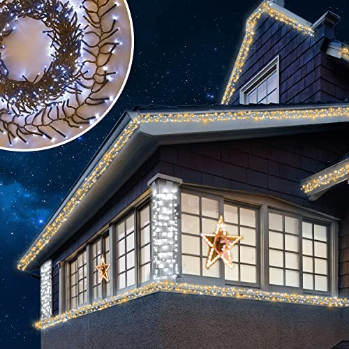 SHATCHI 720 Christmas Tree Cluster Lights Multifunction 8 Light Modes, Timer Green Cable Indoor/Outdoor Low Voltage Holiday Home Decorations, Warm and Cool White