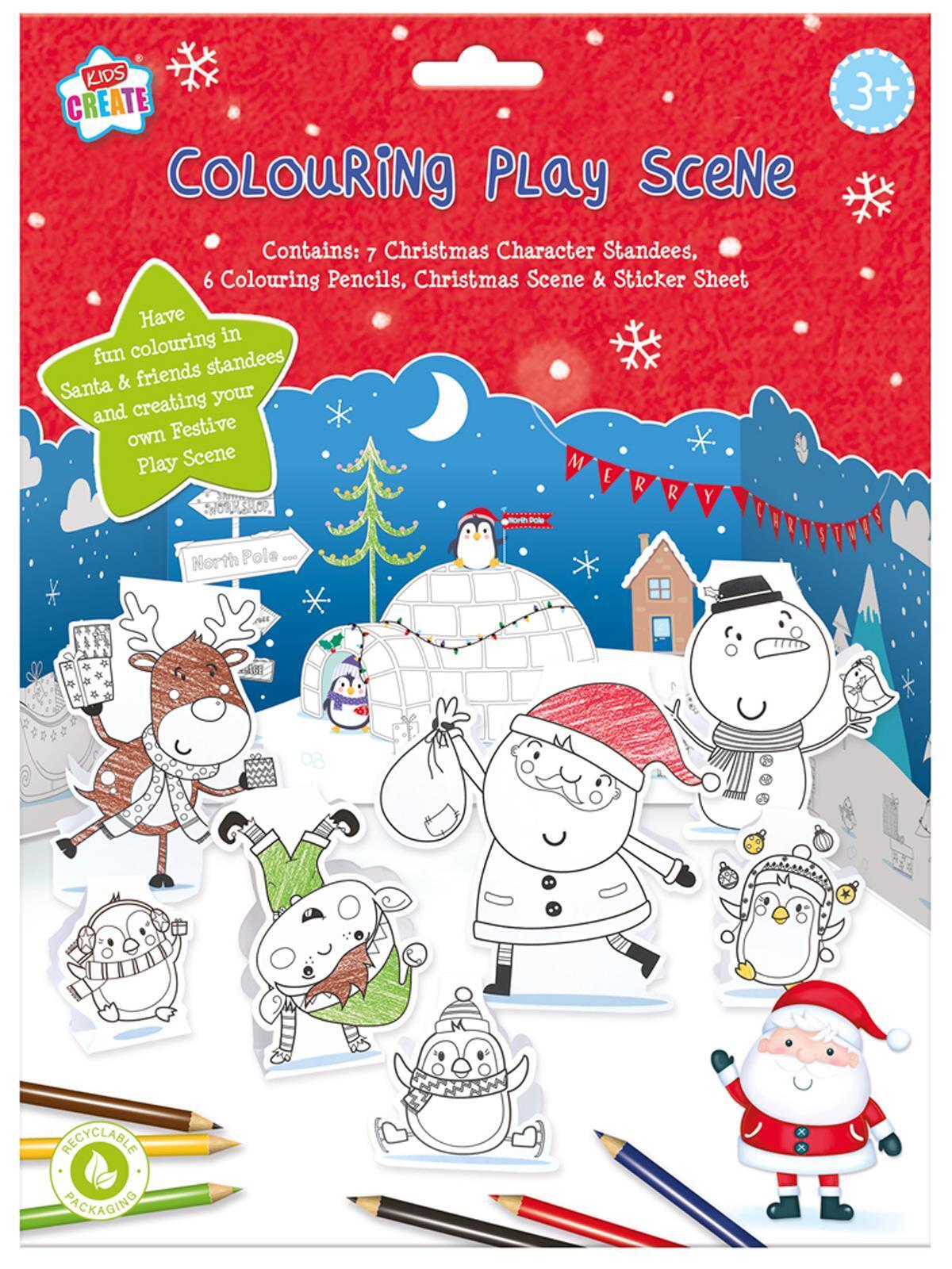 Christmas Colouring Play Scenes Stickers Childrens Creative Activity Ages 3+