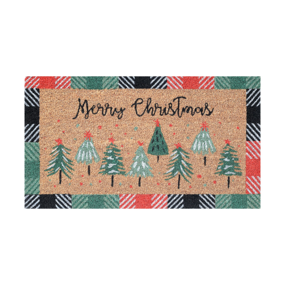 Artsy Doormats Christmas Trees With Merry Christmas Greeting Doormat