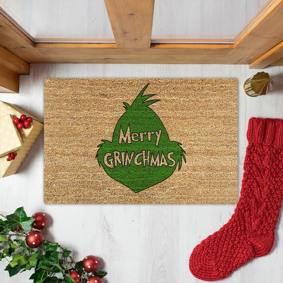 (D) Merry Christmas Grinch Carpet Rug Non-Slip Floor Mats Christmas Decor Door Mat
