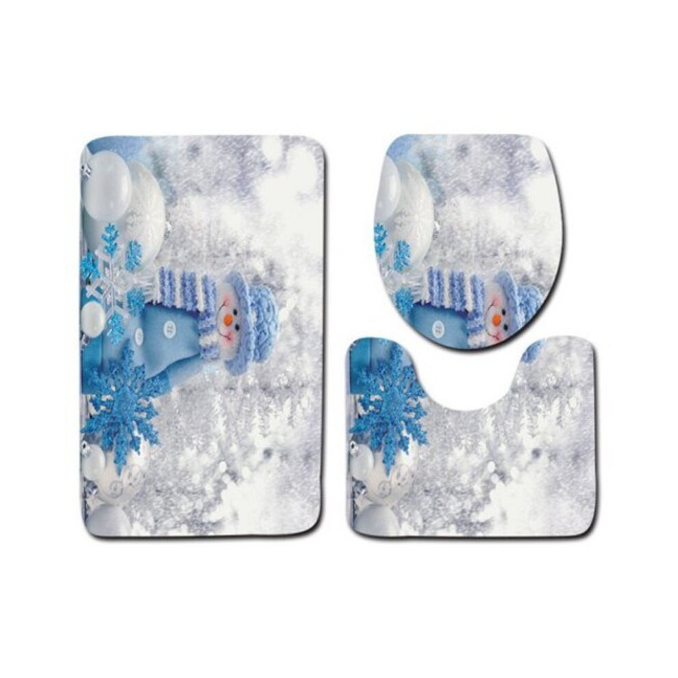 Dl2001 Christmas Snowman Bathroom Toilet Three Piece Floor Mat Door Carpet Multi Bath Mats Rugs & Toilet Covers