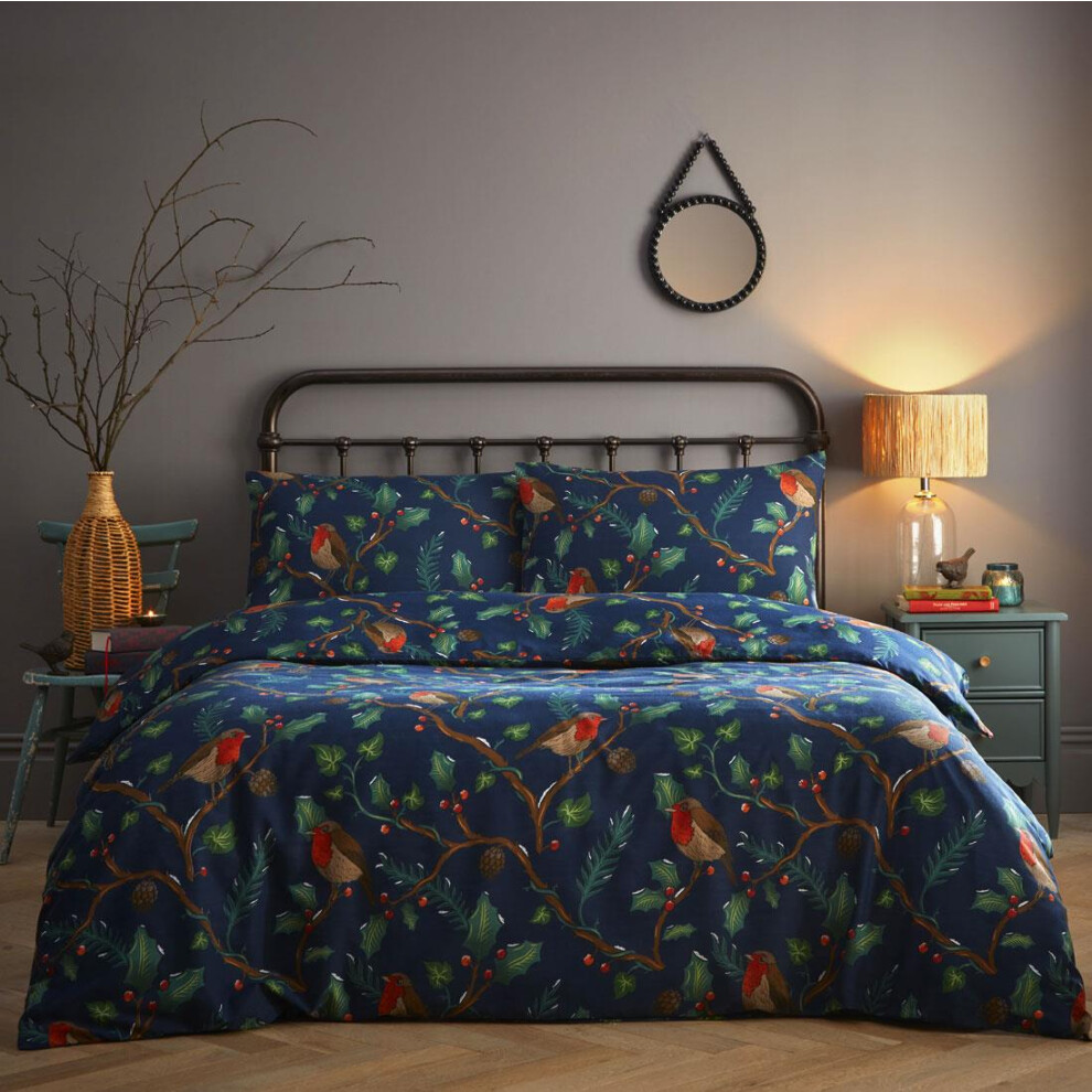 (Double) Christmas Duvet Set Red Robins Holly Traditional Festive Xmas Bedding