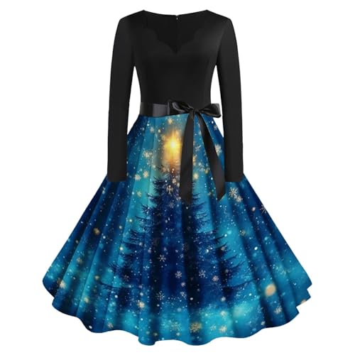 Christmas Dress for Women, Sexy Xmas Outfits Women UK, Vintage Long Sleeve Print Christmas Party Swing Dress Sexy Xmas Novelty Dresses Christmas Outfits Costumes