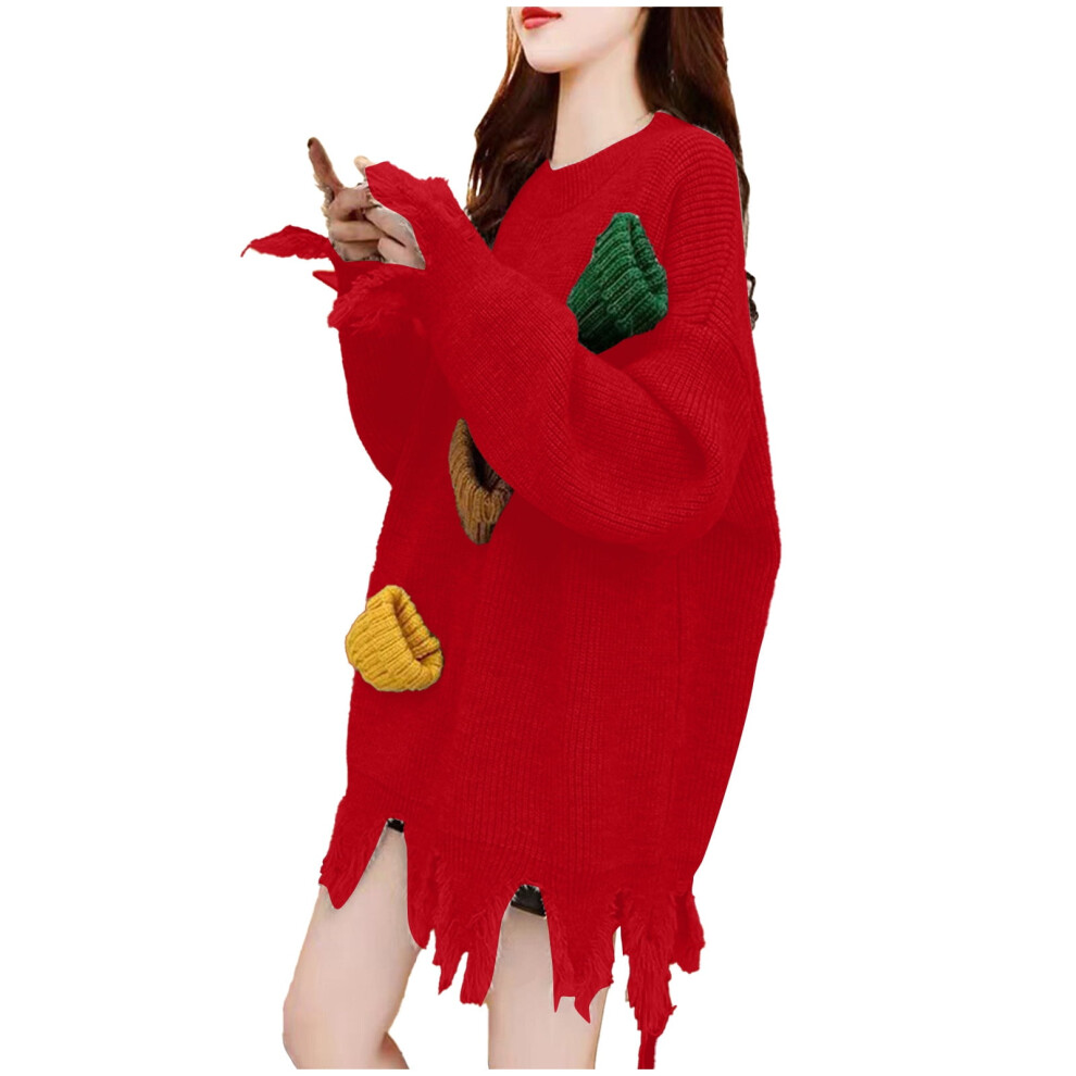 (red, XL) Ugly Christmas Sweaters for Women Long Sleeve Crewneck Pullover Knitted Tops Holiday Festive Jumper