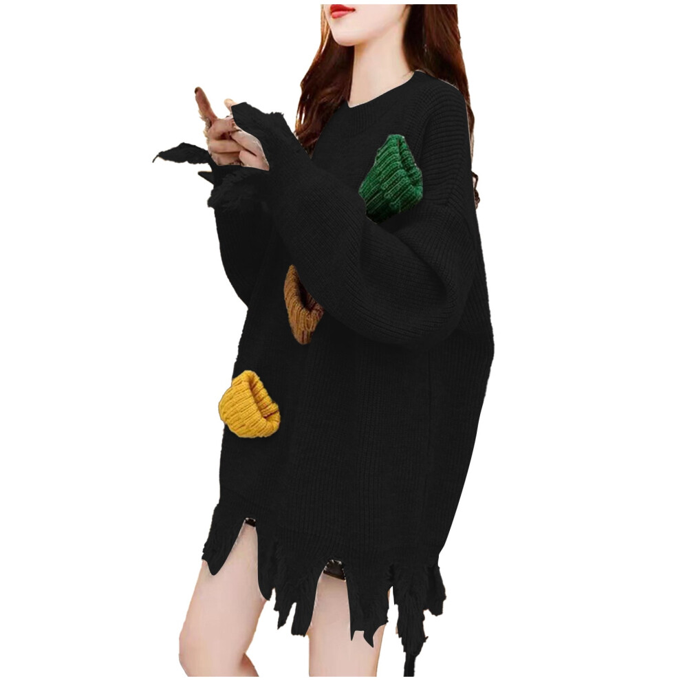 (black, Free Size) VKOYWKM Christmas Sweaters for Women Ugly Christmas Sweaters Fall Crew Neck Long Sleeve Knitted Sweaters Xmas Holiday Pullover Swea