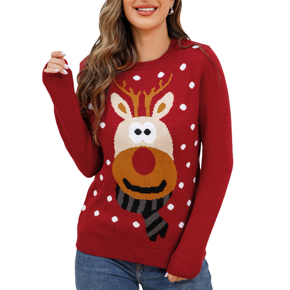 (red, S) Ugly Christmas Sweaters for Women Long Sleeve Crewneck Pullover Knitted Tops Holiday Festive Jumper