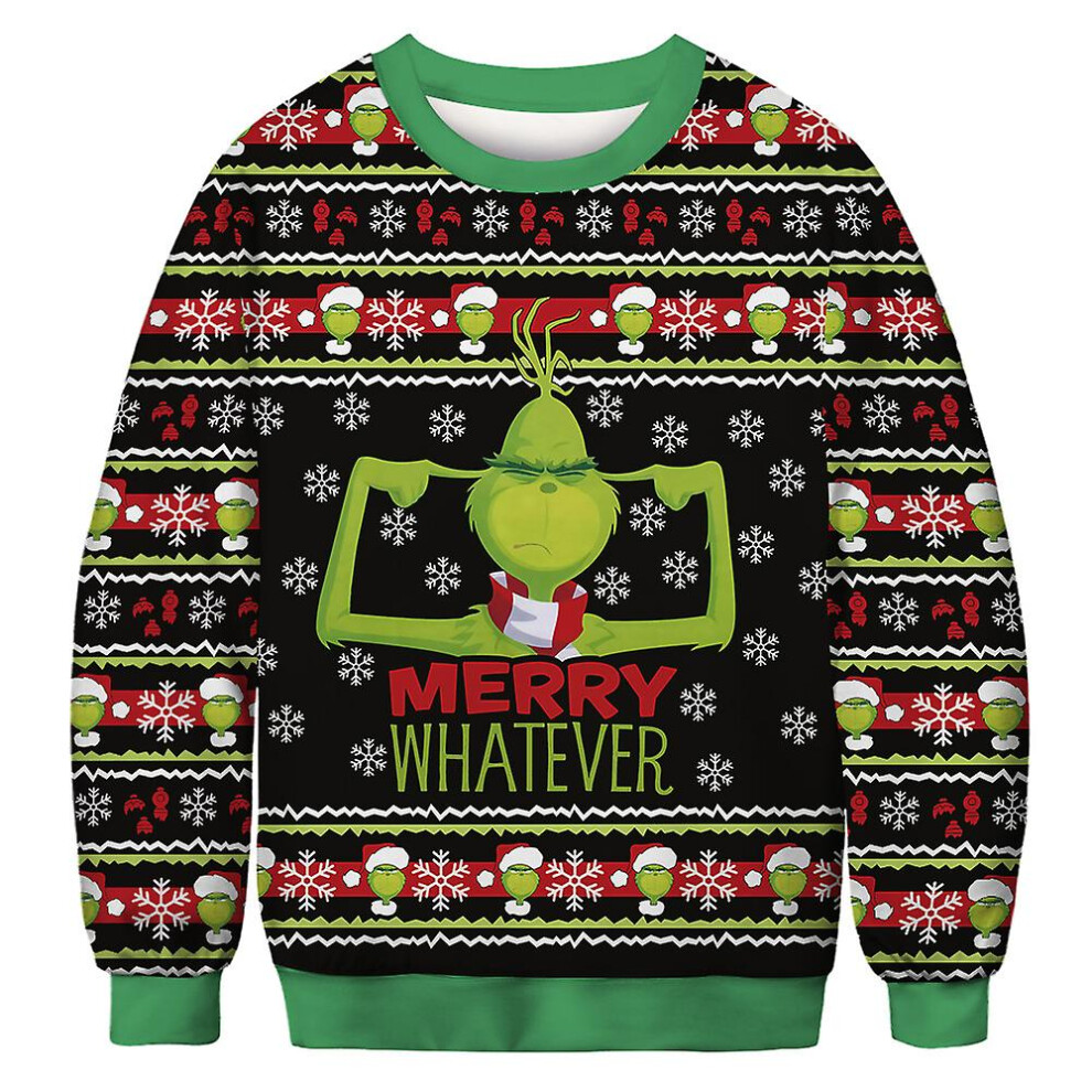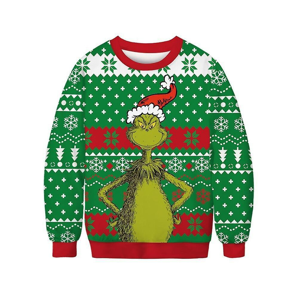 (L) 2022 Funny 3d Print Sweater Men Women Ugly Christmas Sweaters Jumpers Tops Holiday Party Pullover Hoodie Sweatshirt - Grinch Wearing A Christmas H