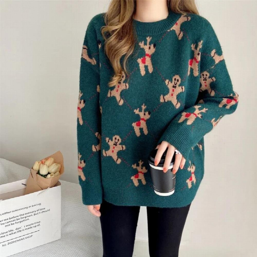 Abrini Women Christmas Sweaters Knitted Casual Printed Oversize Pullovers Thick Warm Jumpers Holiday Sweater Women Winter