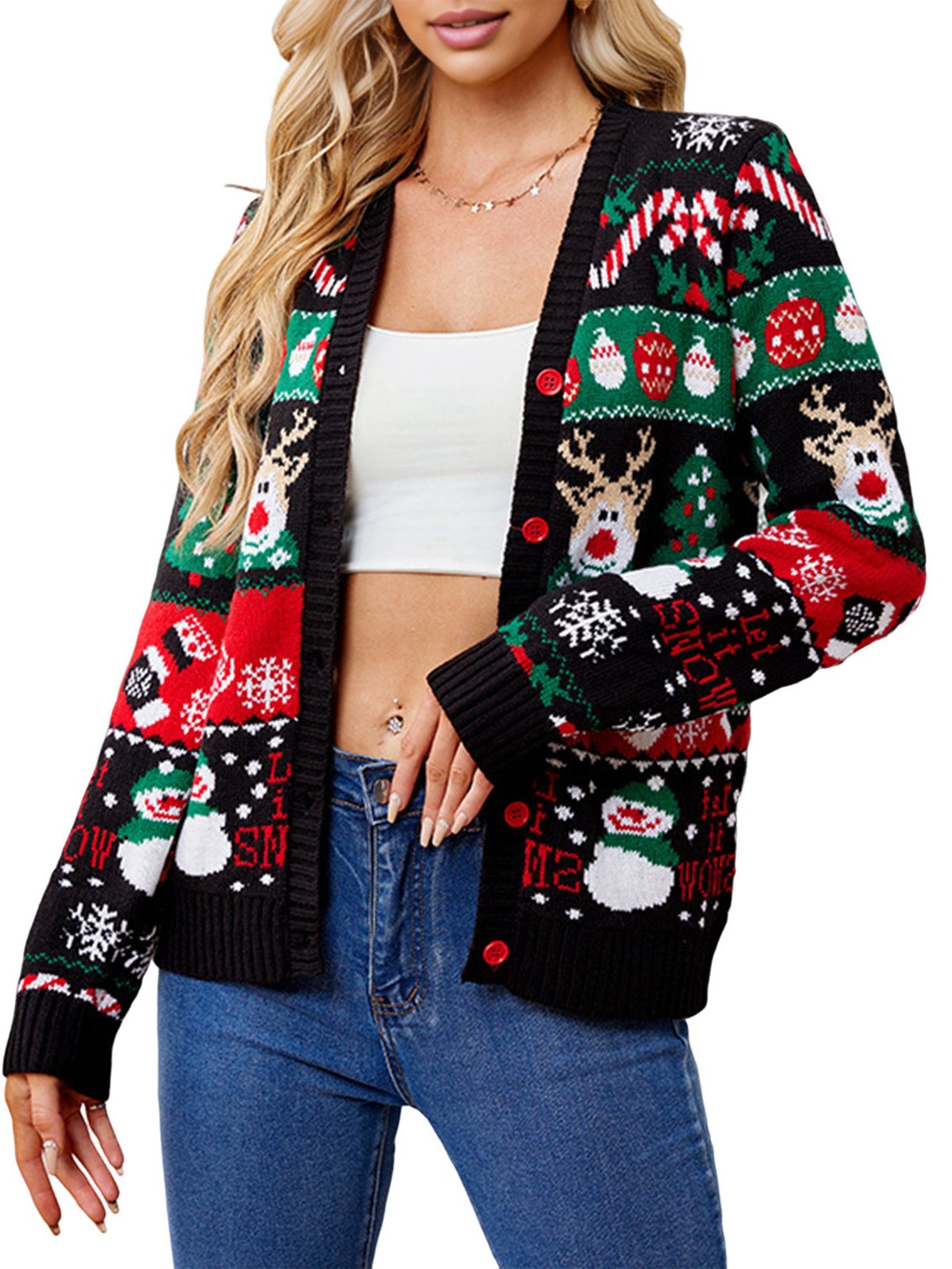 Christmas Sweaters for Women Cute Fuzzy Funny Wintertime Holiday Parties6072