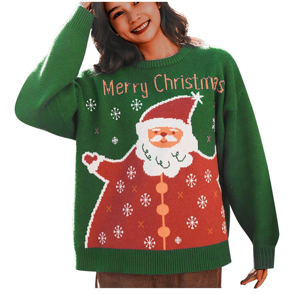 (green, M) Christmas Sweaters for Women Snowflake Graphic Knitted Sweater Winter Long Sleve Sweater Holiday Party Sweater Tops clearance sweaters wome