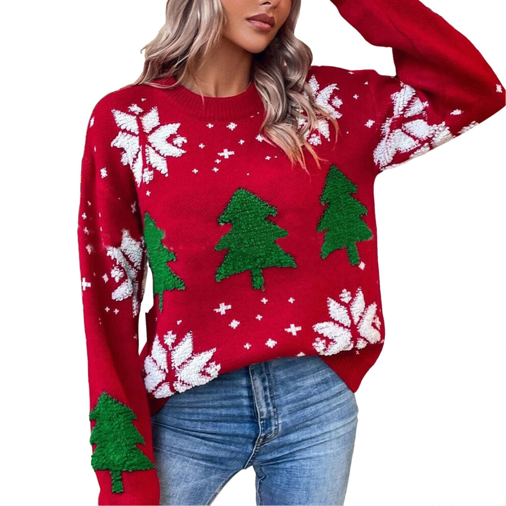 (red, S) Sweaters for Women Ugly Christmas Christmas Tree Snowflake Print Sweaters Soft Crew Neck Long Sleeve Knit Holiday Xmas Pullover Christmas Gif