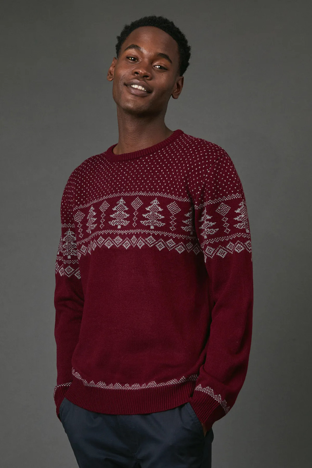 Christmas Jumper Mens, Knit Jumper Xmas Xmas Tree & Reindeer Fairisle Pattern Long Sleeve Knit Crew Neck Crew Xmas Sweater Mens Sweater Mens Xmas Jumper Fairisle Jumper Men