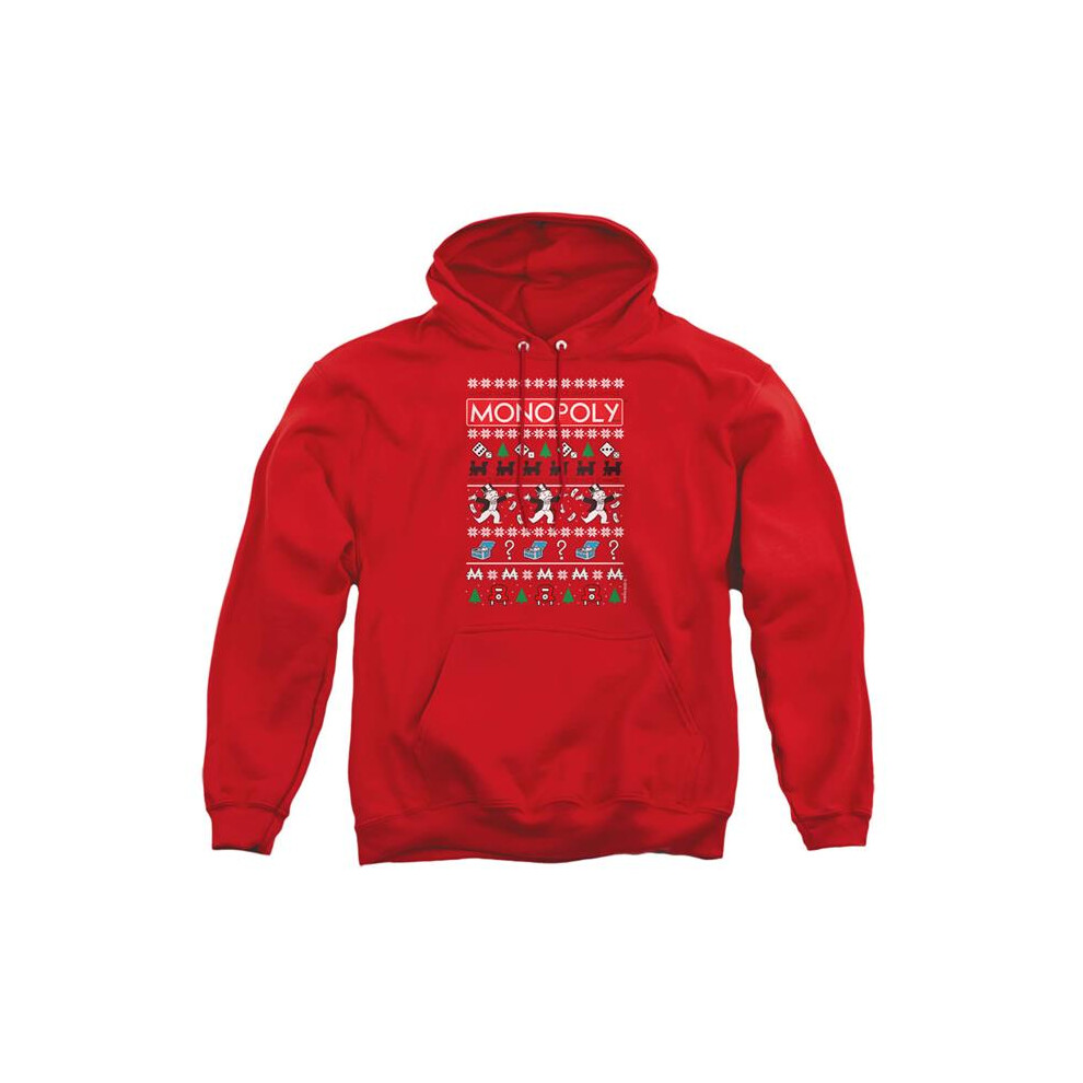 Trevco Sportswear HBRO10387-AFTH-4 Monopoly Icons Ugly Christmas Adult Pullover Hoodie, Red - Extra Large