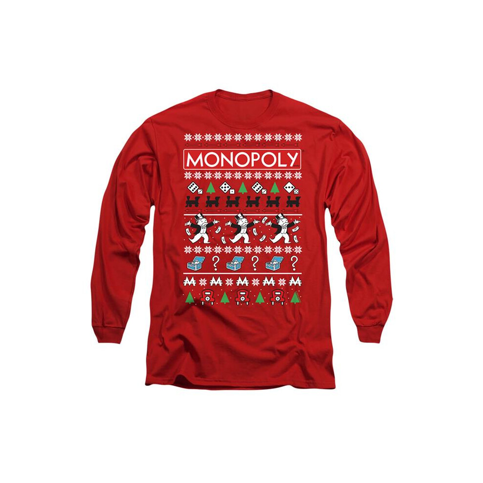 Trevco Sportswear HBRO10387-AL-4 Monopoly Icons Ugly Christmas Adult Long Sleeve T-Shirt, Red - Extra Large