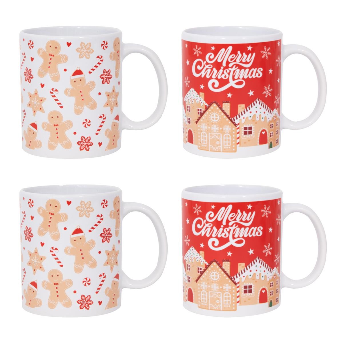 Christmas Gingerbread Mugs Pack of 4 Red Holly Festive Tea Coffee Hot Chocolate