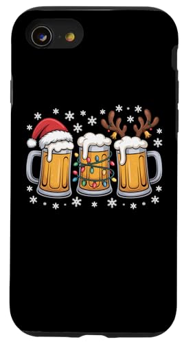 Christmas Beer Lovers Mugs Santa Reinbeer Tree Lights Xmas Case for iPhone SE (2020) / 7/8