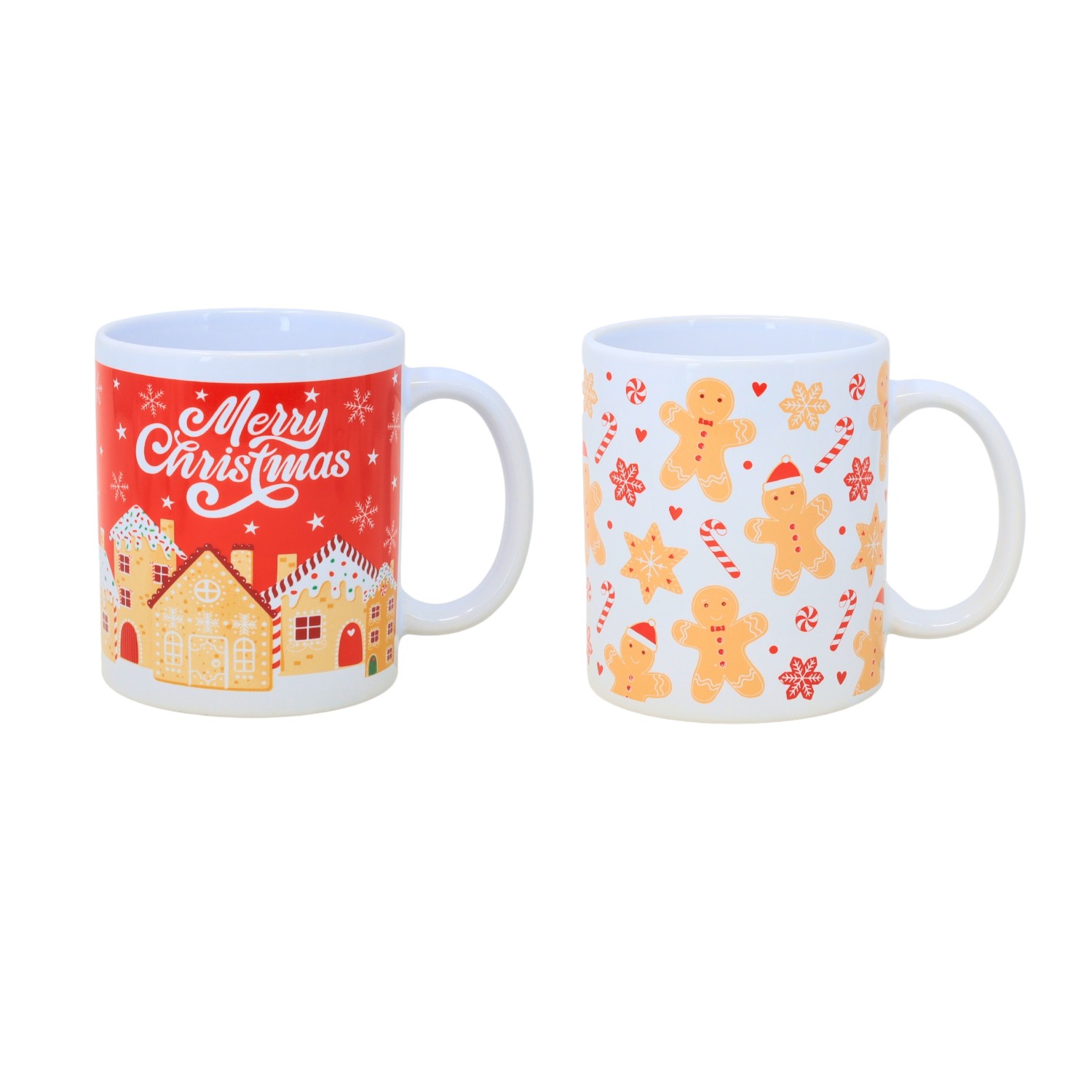 Stoneware Mug Set of 2 Gingerbread Christmas Coffee Mugs Hot Choco 350ml Cups