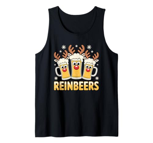 Reindeer Beer Mugs Christmas Holiday Fun Tank Top
