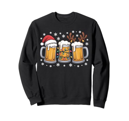 Christmas Beer Lovers Mugs Santa Reinbeer Tree Lights Xmas Sweatshirt