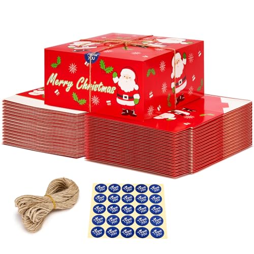 Switory 15Pcs Christmas Boxes with Lids and Thank You Stickers, 8x8x4'' Recycled Kraft Xmas Wrapping Presents Boxes Red Gift Box for Christmas, Gifts, Mugs, Scarf, Stockings, Gloves