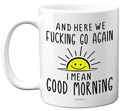 Stuff4 Funny Novelty Gifts - Here We Go Again - 11oz Ceramic Dishwasher Safe Premium Mugs, Silly Secret Santa Presents, Christmas Mugs for Adults, Birthday Gift