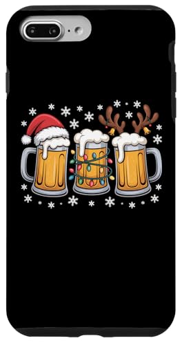 Christmas Beer Lovers Mugs Santa Reinbeer Tree Lights Xmas Case for iPhone 7 Plus/8 Plus