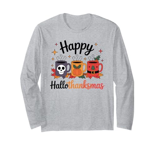 Hallothanksmas Halloween Thanksgiving Christmas Mugs Long Sleeve T-Shirt