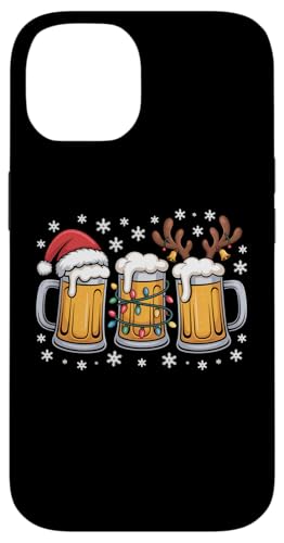 Christmas Beer Lovers Mugs Santa Reinbeer Tree Lights Xmas Case for iPhone 14 Pro Max