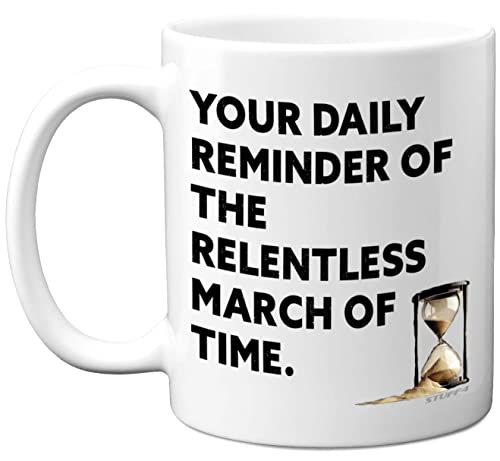 Funny Birthday Mug for Women Men - Relentless March of Time - Rude Christmas Mugs Present Gifts for Colleague Mum Dad Auntie Uncle Brother Sister, 11oz Ceramic Coffee Mugs Humour Joke Banter Cup