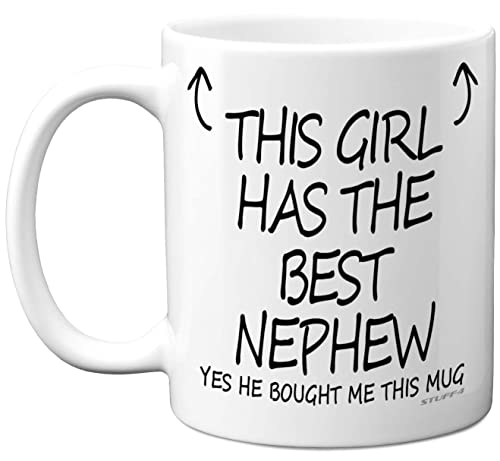Stuff4 Auntie Gifts - Aunty Mug, This Girl Has The Best Nephew, 11oz Ceramic Dishewasher Safe Mugs, Christmas Aunt Birthday Gifts from Nephew, Gift for Aunty Mothers Day - Made in UK