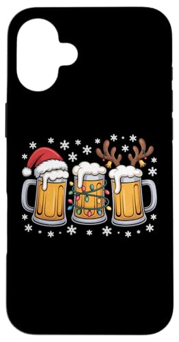 Christmas Beer Lovers Mugs Santa Reinbeer Tree Lights Xmas Case for iPhone 16 Plus