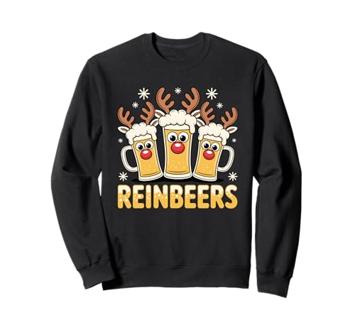 Reindeer Beer Mugs Christmas Holiday Fun Sweatshirt