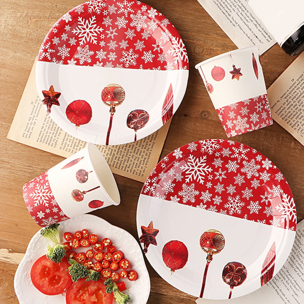 80pcs Christmas Party Tableware,Christmas Tableware Set,Plate, Cup, Napkin, Xmas Decoration Paper Dinnerware Set-20 people
