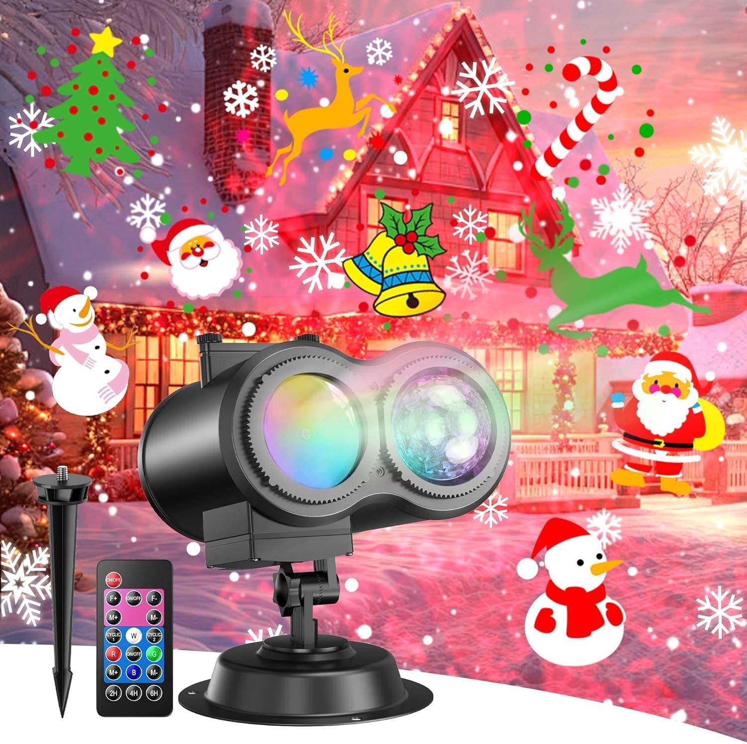 Snow Projector Outdoor Christmas Projector Lights with Remote Control and Timer