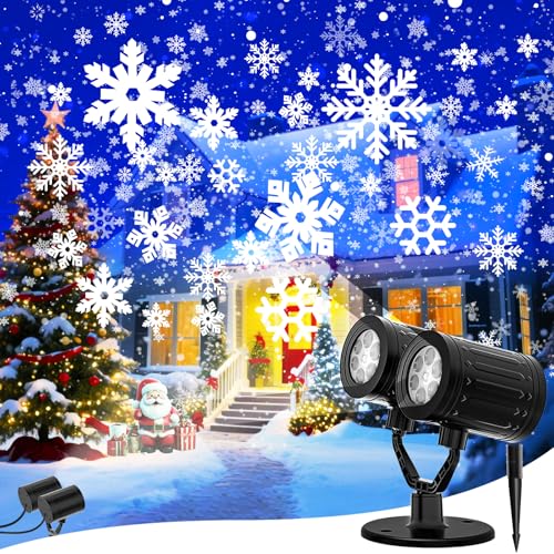 NACATIN Outdoor Christmas Projector Lights, Dual-Head Snowflake Snow Projector