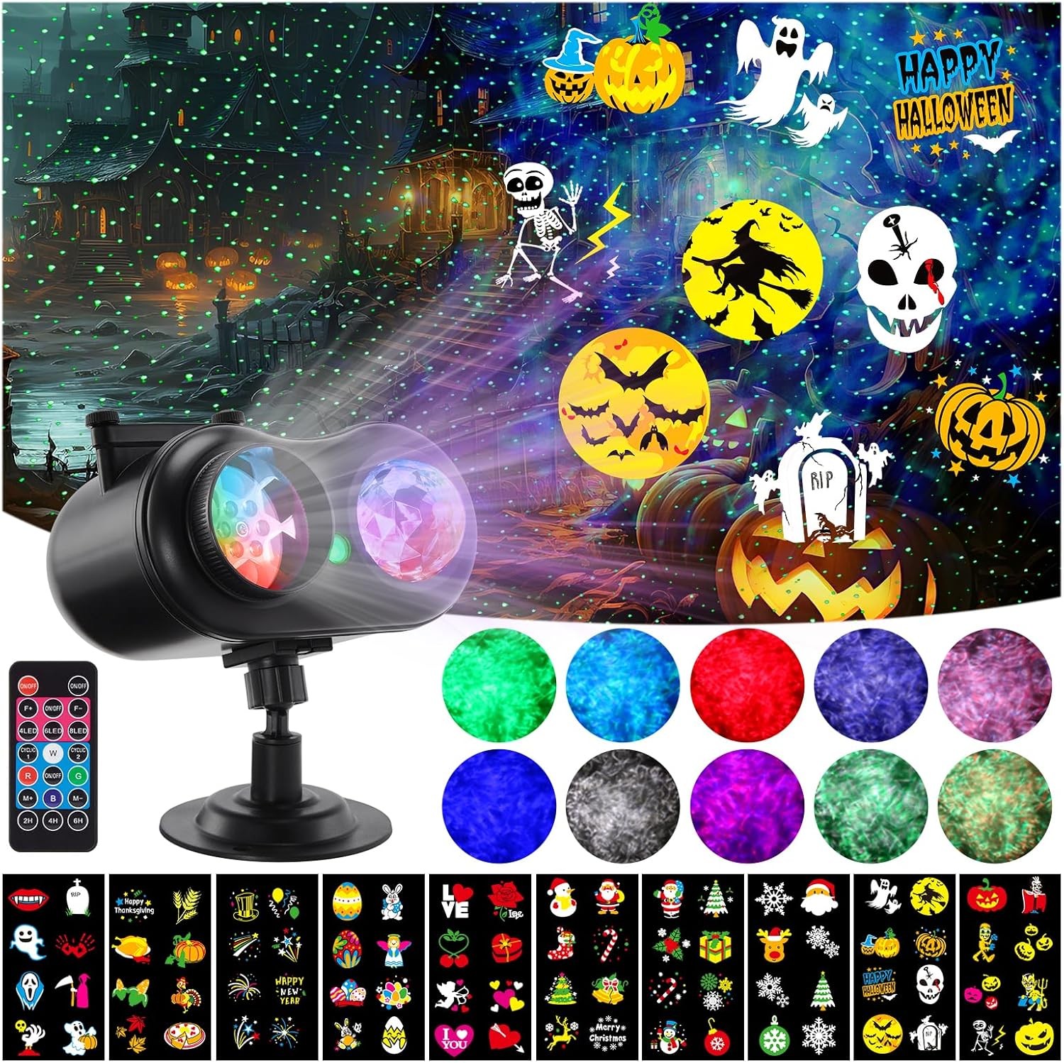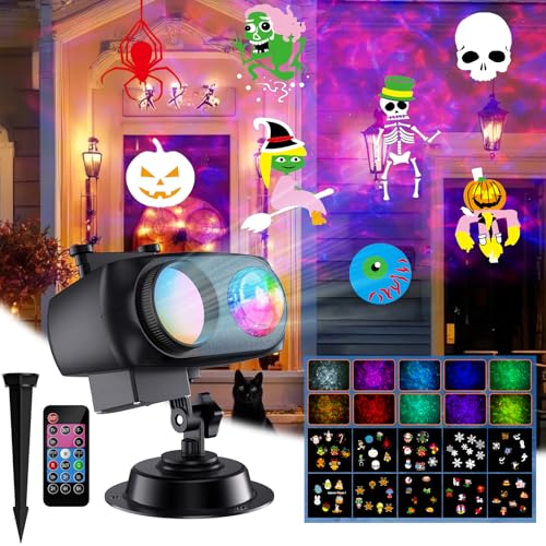 COOLWUFAN Halloween Christmas Projector Lights Decorations, 2025 Upgrade Outdoor Indoor Holiday Projector Lights with Remote and 20 HD Effects(3D Ocean Wave) for Xmas Halloween Party Yard Decor