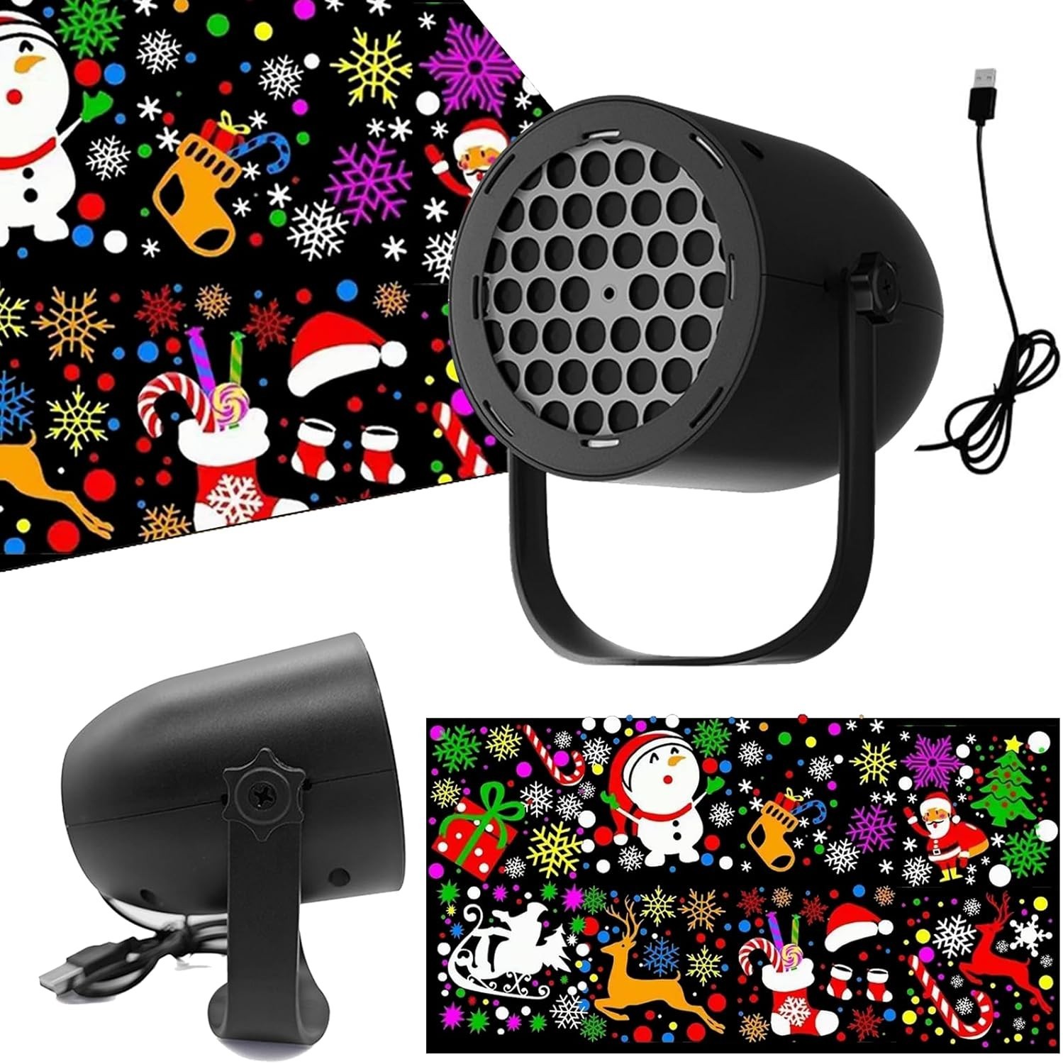 Akfldms 2X Christmas Projector Lights Indoor 16 Patterns Led Projector Light USB 5V Power Stage Light
