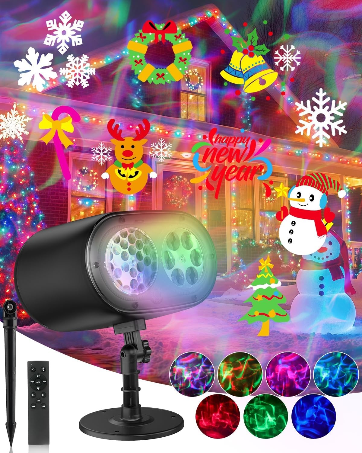 2025 Upgraded Brighter HD Christmas Projector Lights, IP67 Waterproof Outdoor C