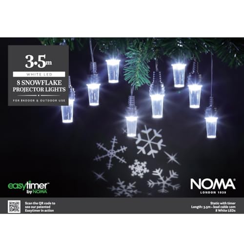 Noma Snowflake Pattern Projector Christmas String Lights, 8 Warm White Projector Bulbs, 14 m