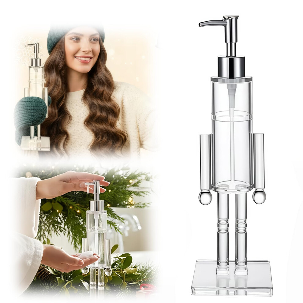Christmas Soap Dispenser with Festive Nutcracker Design, Clear Acrylic, Easy Refill for Holiday Decor