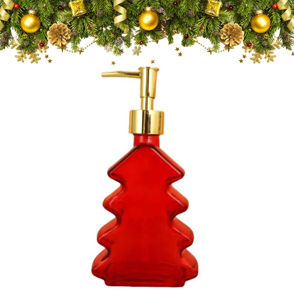 Christmas Tree Glass Soap Dispenser with Festive Design, Refillable Hand Soap Pump for Holiday Decor (Red)