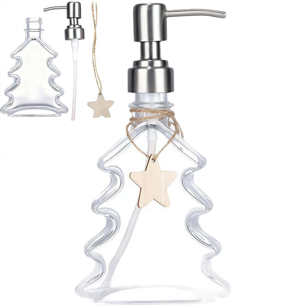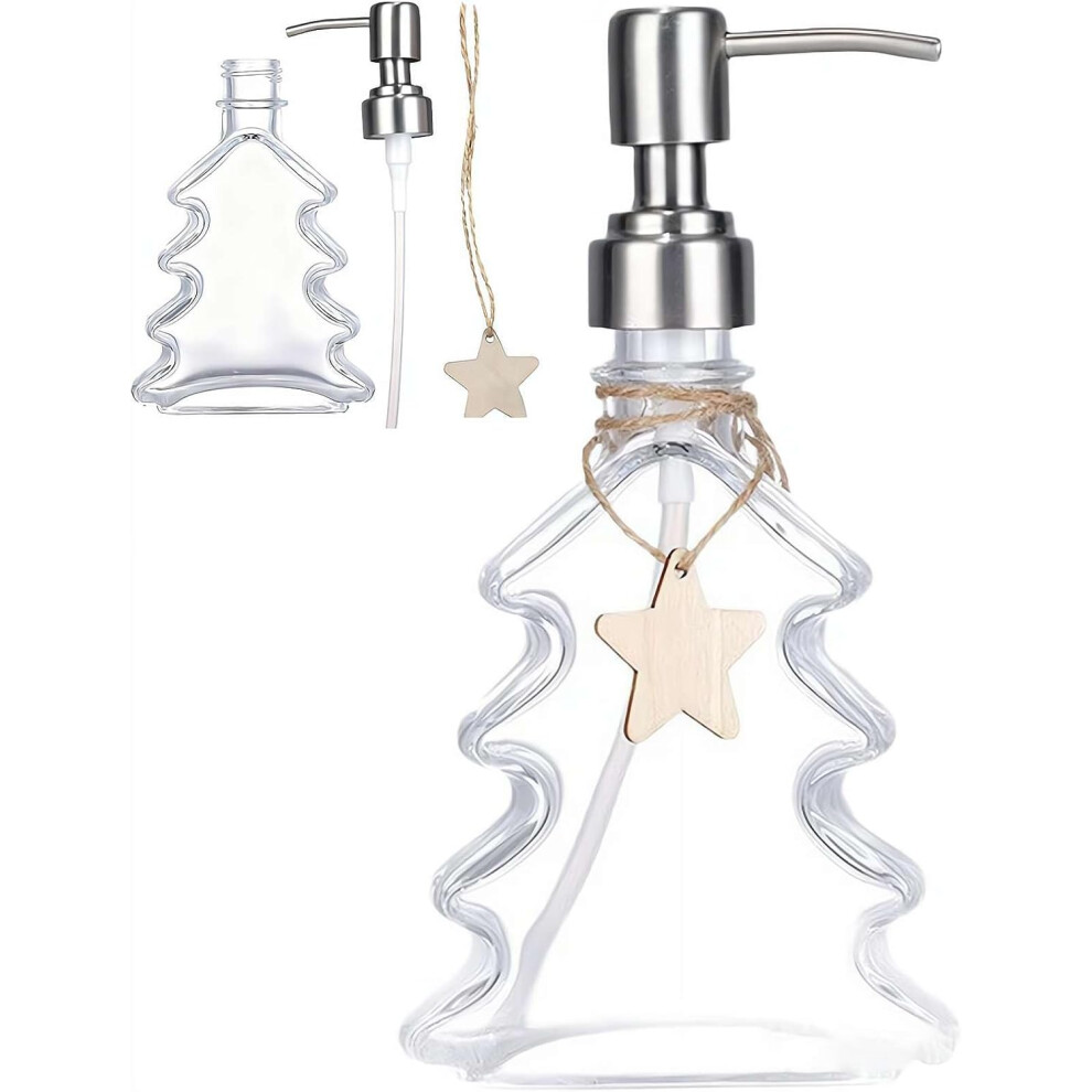 Christmas Tree Soap Dispenser Glass Hand Pump Bottle Bathroom Kitchen Xmas Decor