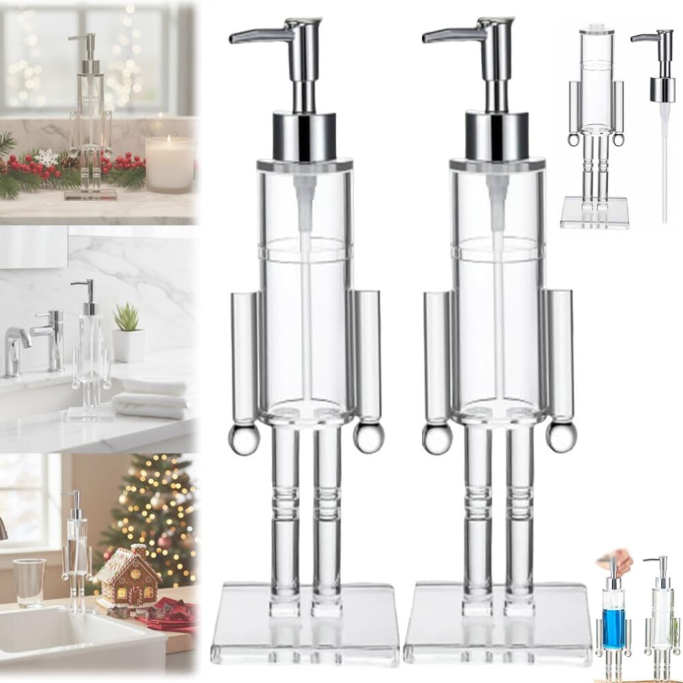 Christmas Soap Dispenser Set, Clear Acrylic Nutcracker Pump, Leak and Easy Refill, 2pcs