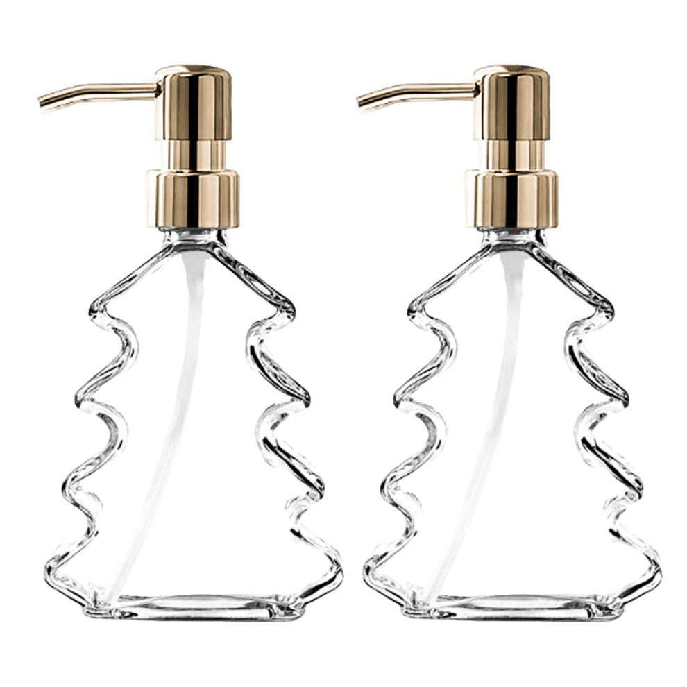 Christmas Soap Dispenser 2Pcs Tree Shape Glass Soap Dispenser with Pump Refillable Rust Proof Kitchen Bathroom Home