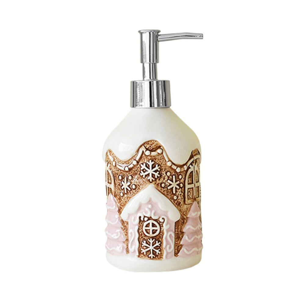 Christmas Soap Dispenser Gingerbread House 3D Relief Ceramic Bottle for Festive Bathroom Decor
