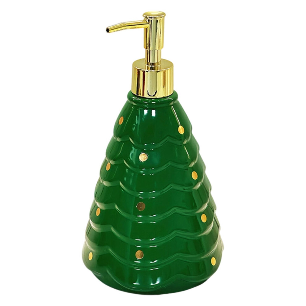 Christmas Soap Dispenser Festive Tree Shaped Refillable Ceramic Soap Dispenser Gold Dot Bathroom Decor 750ml Green