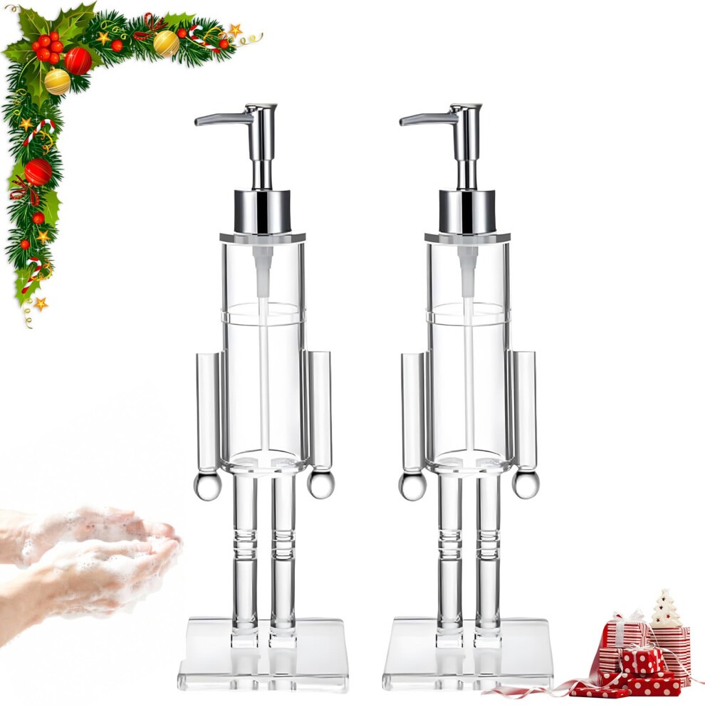 Christmas Nutcracker Soap Dispenser Set, 2x150ml Clear Acrylic Pump for Kitchen and Bathroom