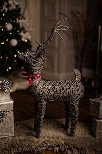 garden mile® Large Rustic Christmas Rattan Effect Stag Reindeer Home Or Garden Christmas Decoration Animal Sculptures Figurine Resin Garden Ornament